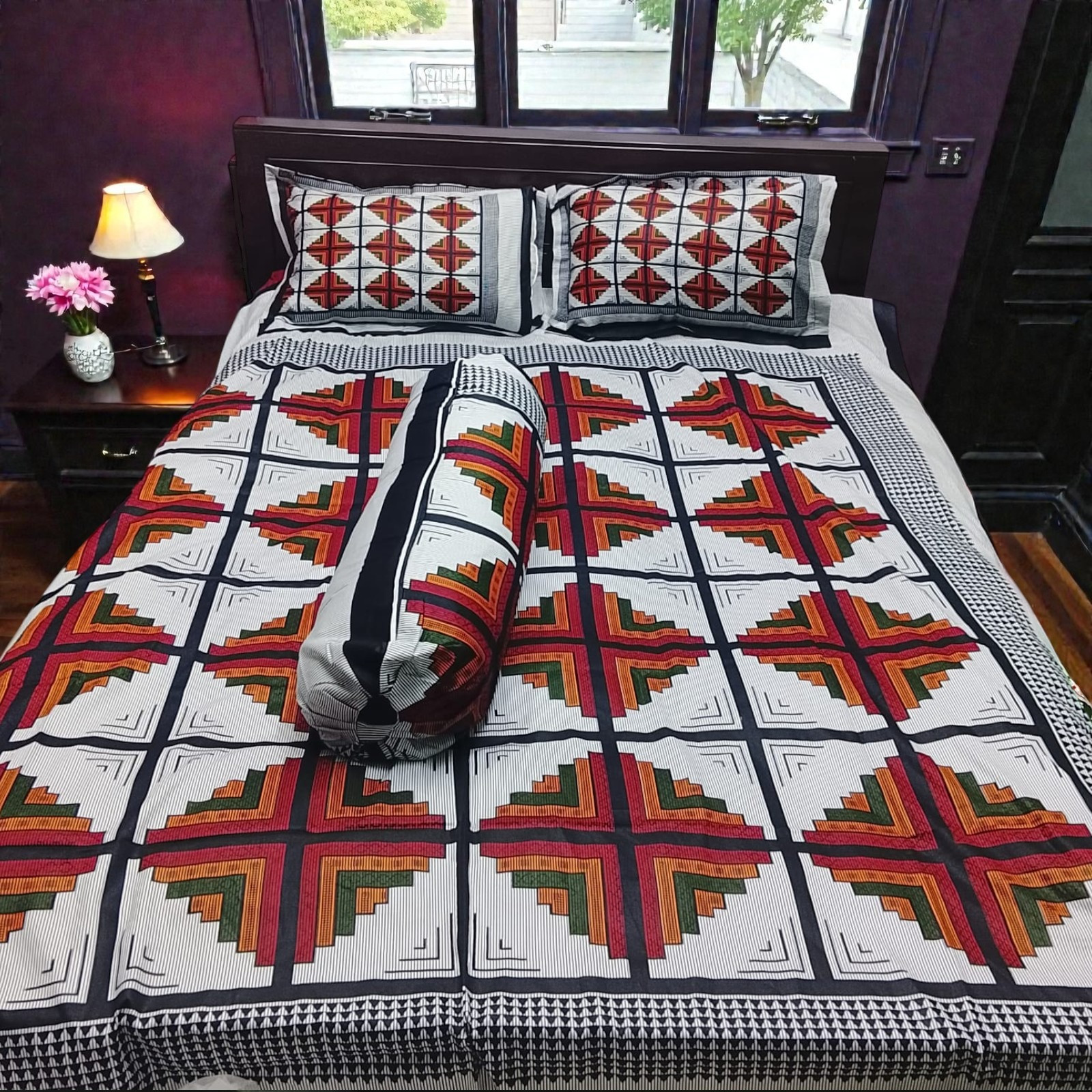 সাথে দুটো সেলাই করা মাথার বালিশের কাভার ও কোল বালিশের কভার আছে
