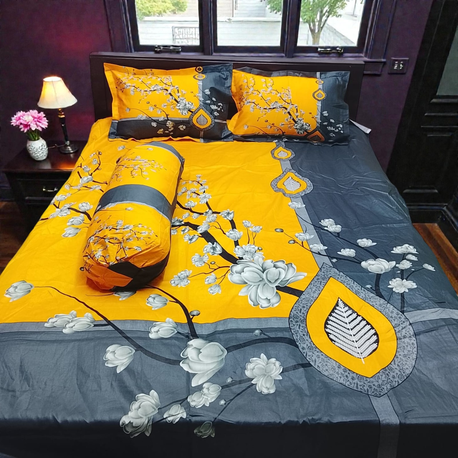 সাথে দুটো সেলাই করা মাথার বালিশের কাভার ও কোল বালিশের কভার আছে