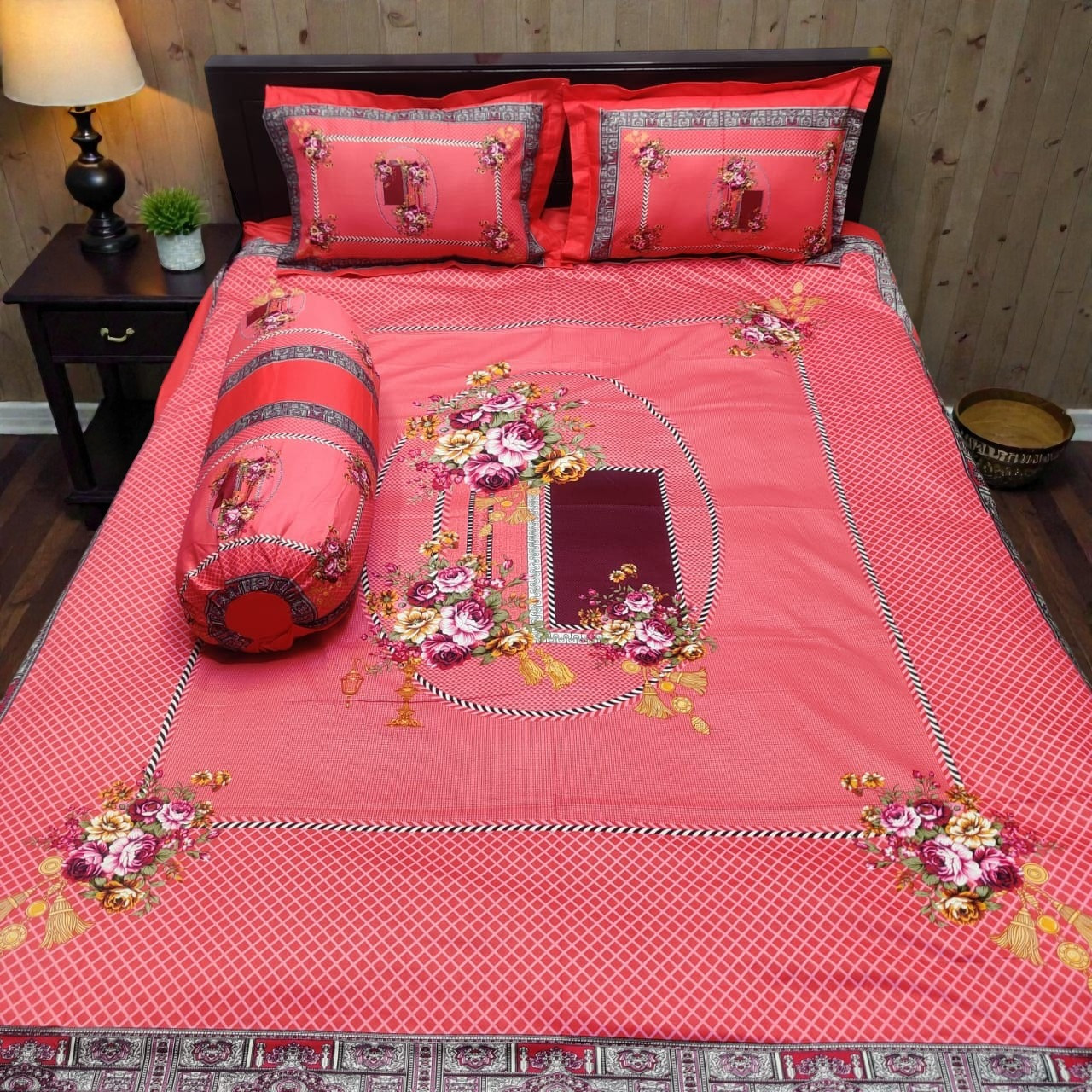 সাথে দুটো সেলাই করা মাথার বালিশের কাভার ও কোল বালিশের কভার আছে