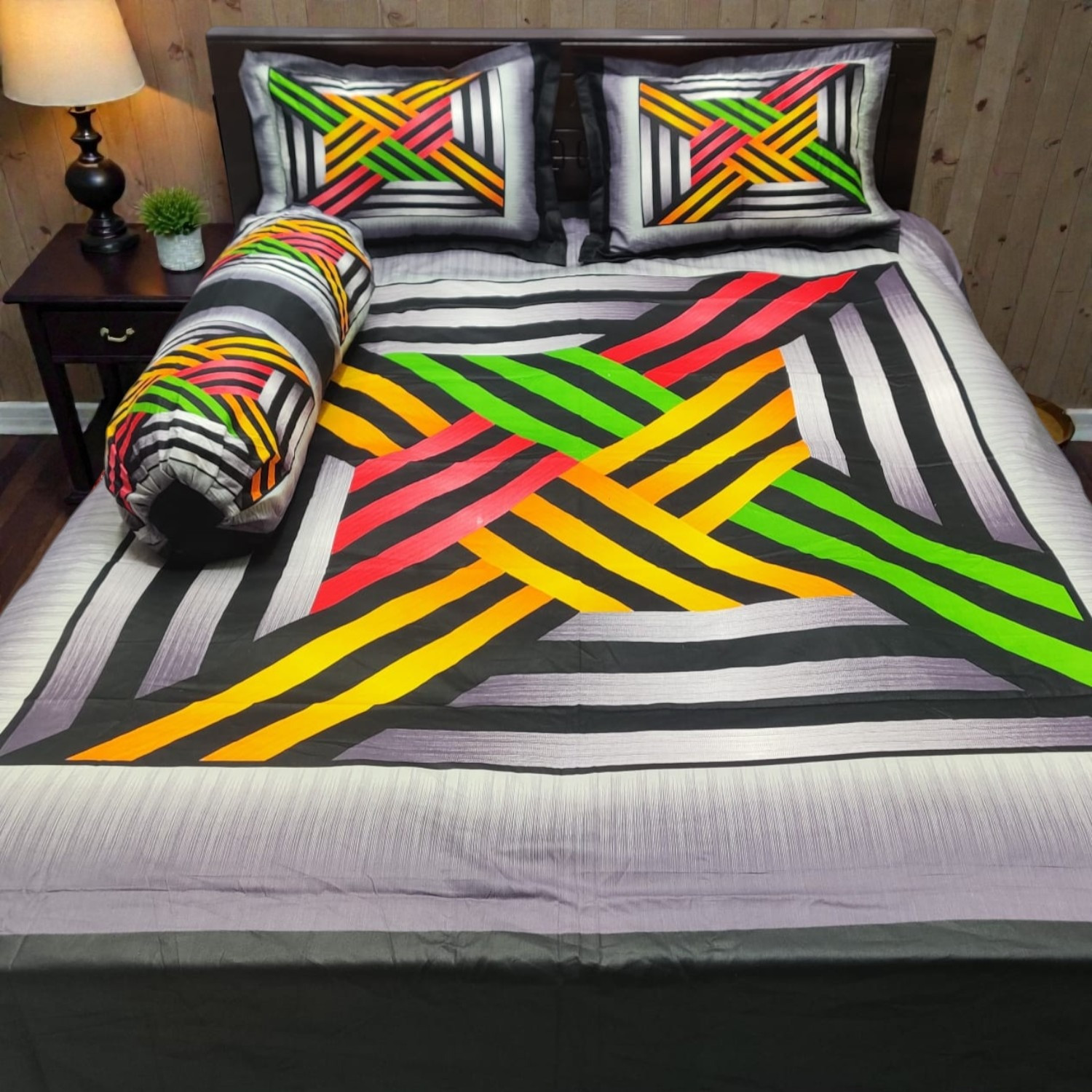 সাথে দুটো সেলাই করা মাথার বালিশের কাভার ও কোল বালিশের কভার আছে