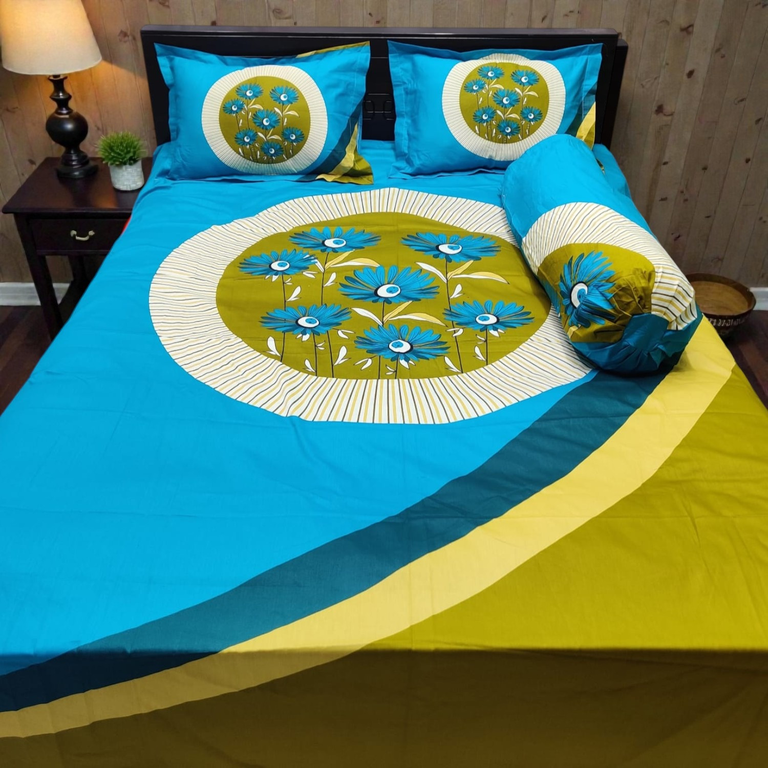 সাথে দুটো সেলাই করা মাথার বালিশের কাভার ও কোল বালিশের কভার আছে