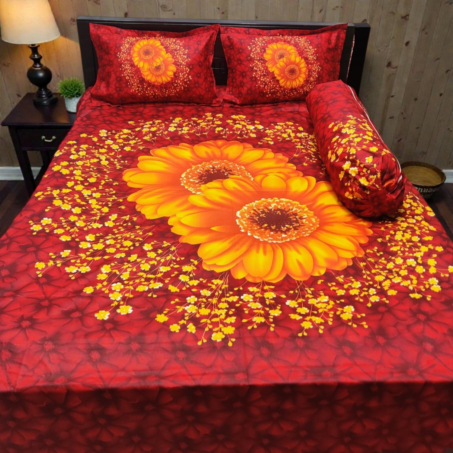 সাথে দুটো সেলাই করা মাথার বালিশের কাভার ও কোল বালিশের কভার আছে