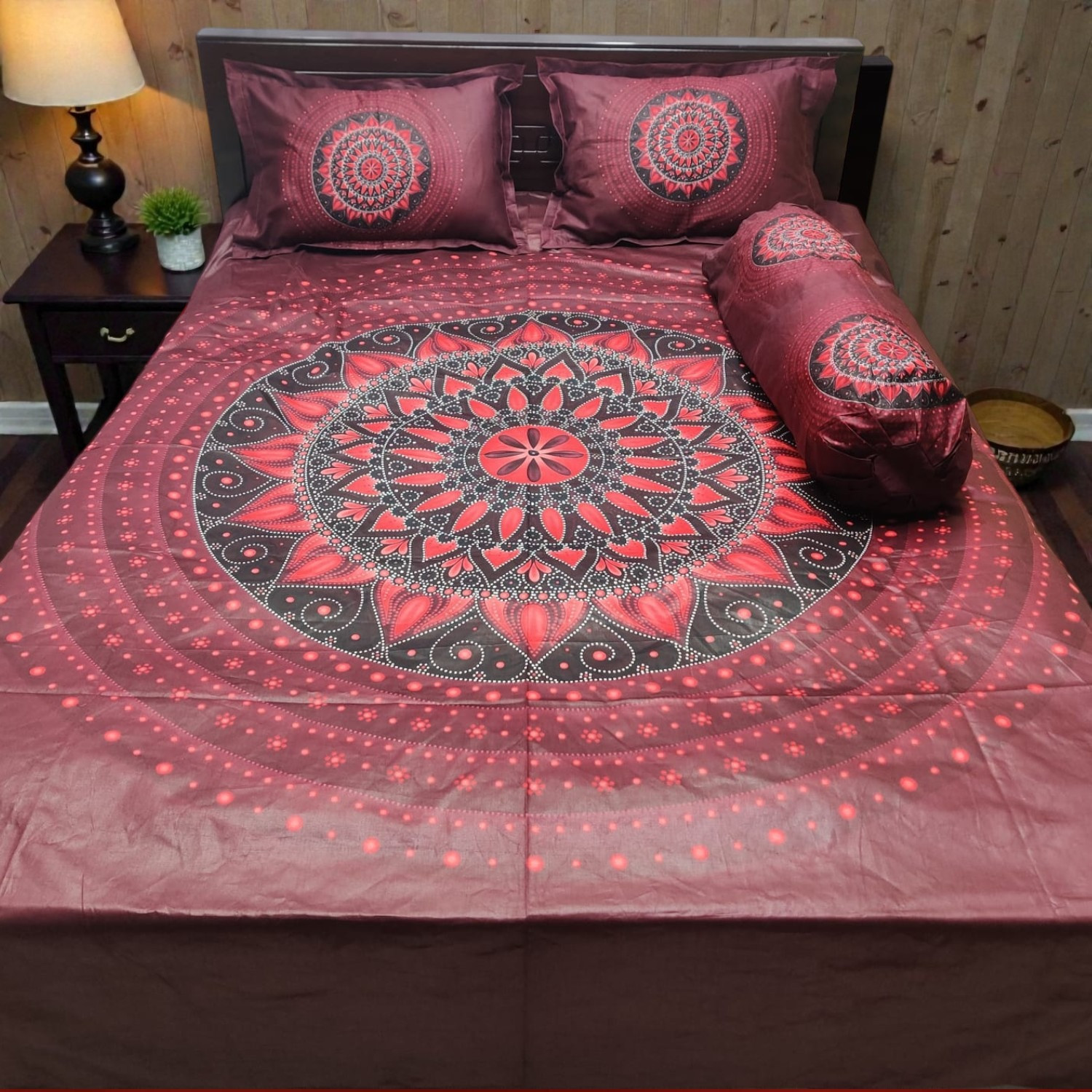 সাথে দুটো সেলাই করা মাথার বালিশের কাভার ও কোল বালিশের কভার আছে